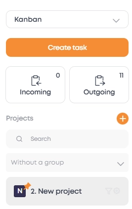 The Kanban system allows you to organize your workflow using projects and tasks. The main controls are located on the sidebar and in the workspace.
